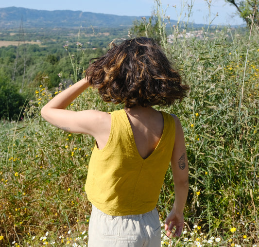Costuro peças intemporais e tinjo-as com as cores da Natureza
